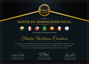 Certificado “Curso Máster en Armonización Facial”. Certificación por ETERNA EDUCATION, la organización educacional del Dr. Thales Wilson Cardoso.